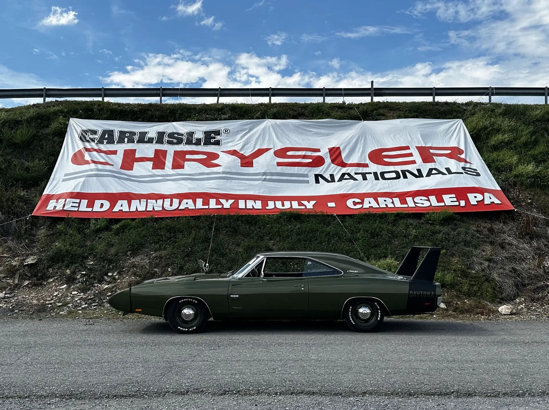 This Daytona Clone began life as a big block 383 1969 Charger. Originally optioned F8 green with black vinyl top and black bucket/console interior.