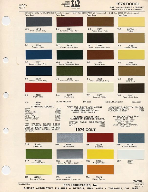Massive thanks to PPG Industries for the charts as well as Auto Color Library for archiving them.